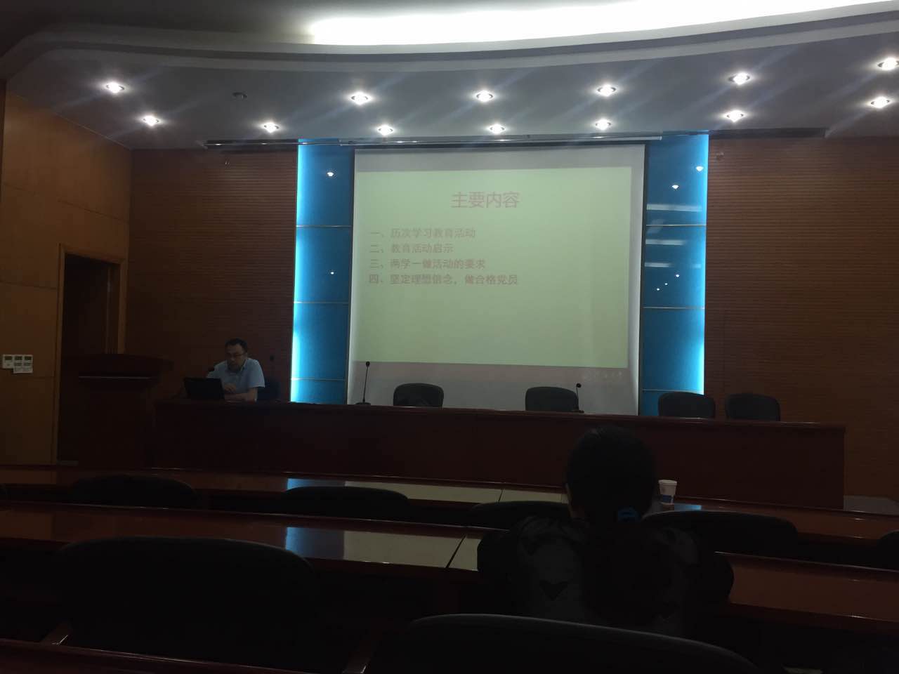 7月1日下午,老王论坛 在水利馆301举行了一场“两学一做”的专题党课,题目为“中国共产党历次教育活动及其启示”,由院党委书记陈杰主讲,全体教工党员参加。