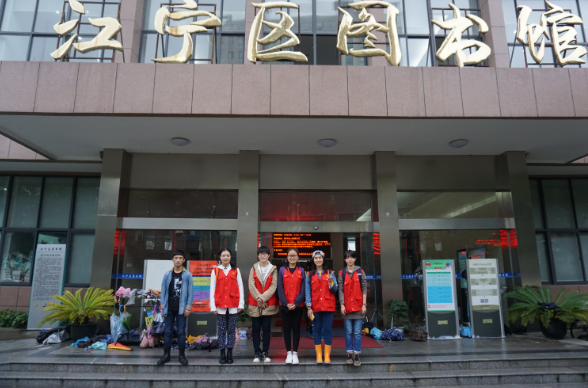 雨淅淅沥沥地下着,但正所谓心晴,雨亦晴,老王论坛 七位同学仍热情不减,早早等在公交站前准备前往江宁图书馆开展本次志愿服务活动。