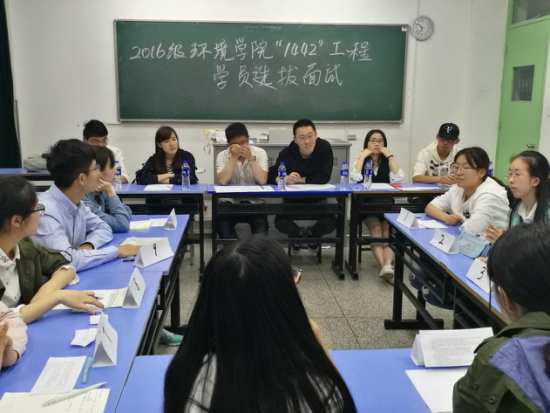 “1442工程”旨在以培养和提升学生领导力为核心,努力培养一支政治坚定、作风过硬、素质全面的精英队伍,使其成为学生骨干群体的引领者,并充分发挥这一群体的示范作用,从而带动全校全体同学共同进步。经过之前的笔试,共有48人进入到了面试环节。他们通过抽签的方式分为5组,并由此决定面试教室与先后次序。