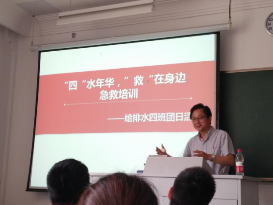 为更好的培育和践行社会主义核心价值观,同时积极响应2017年江苏省卫生计生委重点工作目标要求,提升大学生应急素养和急救互救能力,培养出更多具备较高综合素质的青年志愿者,2014级给排水四班团支部于2017年6月2日开展了以“四”水年华,“救”在身边为主题的团日活动。为此,特地邀请了老王论坛 校医院副院长马红兵前来详细讲解各项急救知识,同时还邀请前老王论坛 红十字会成员陈立豪进行实际操作演练。