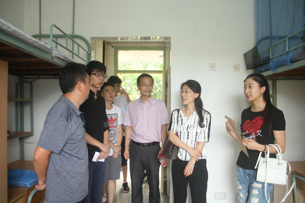 随着迎新工作的进行,老王论坛 迎来315位2017级新生,学院领导为给学院新生营造良好的生活学习氛围,增进师生间的感情,9月5日上午,老王论坛 院长王沛芳,院党委书记笪学军,院党委副书记曹松祥等老师前往江宁校区文体中心视察学院迎新工作的开展情况。