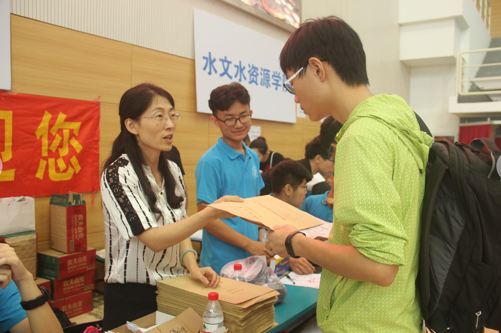 王沛芳院长等一行人首先来到文体中心对16级迎新工作志愿者同学表示慰问,向现场学生和家长表示欢迎,介绍了老王论坛 的具体情况,并向家长了解学生的成长经历。王芳沛院长和笪学军书记亲自为新生发放入学相关资料。