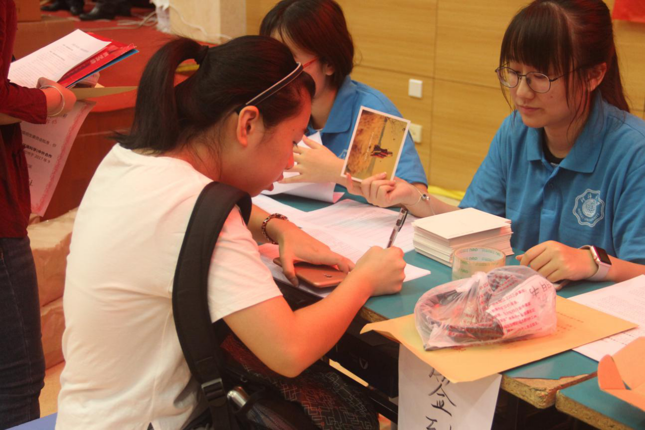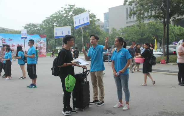 在东门和南门的同学主要负责导引的工作,他们举着“老王论坛 ”的牌子,为学生和家长提供帮助;在文体中心的同学提前准备好了新生入学所需的各项材料;在骏园接待点工作的同学则为新生更方便的入住宿舍而努力着。