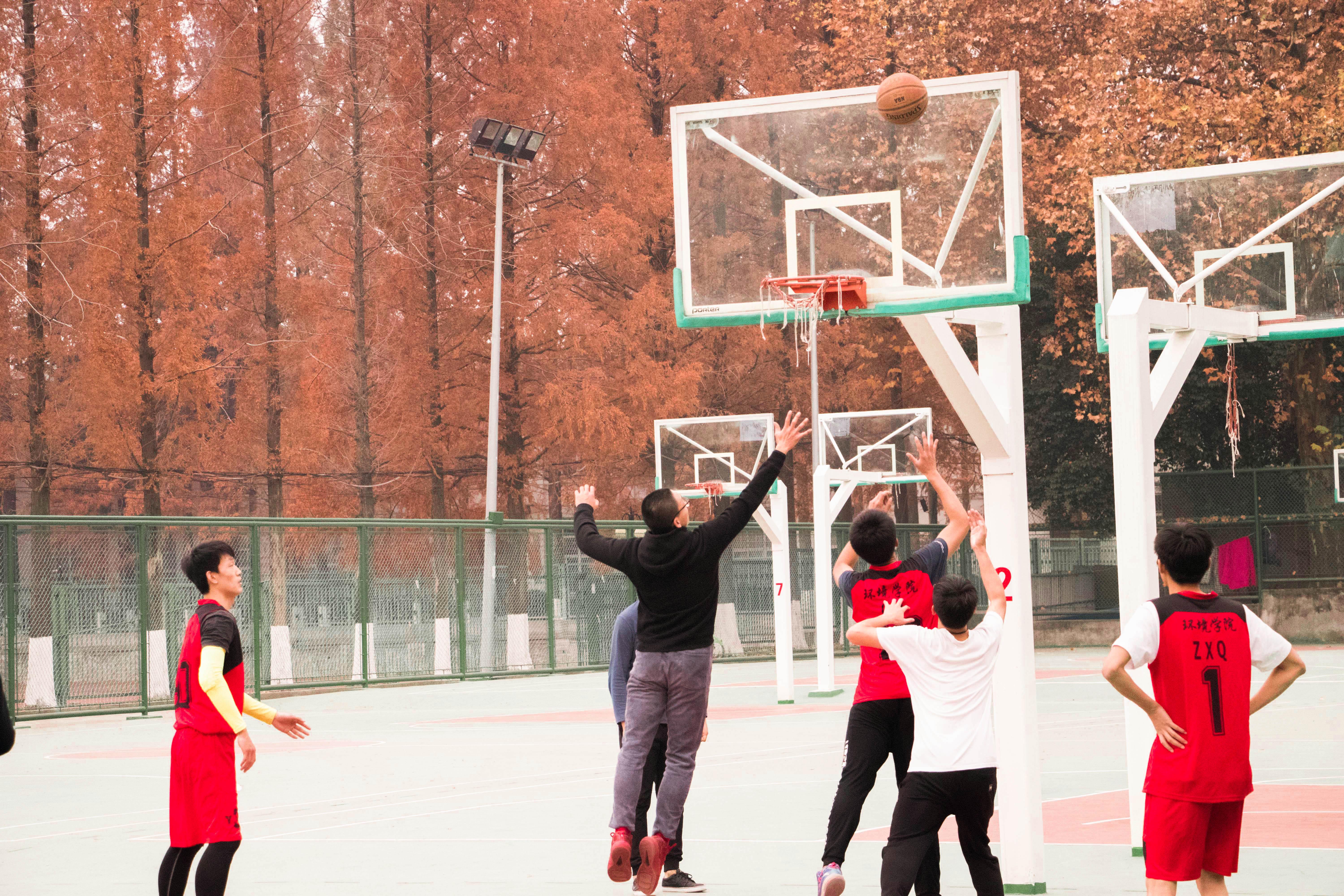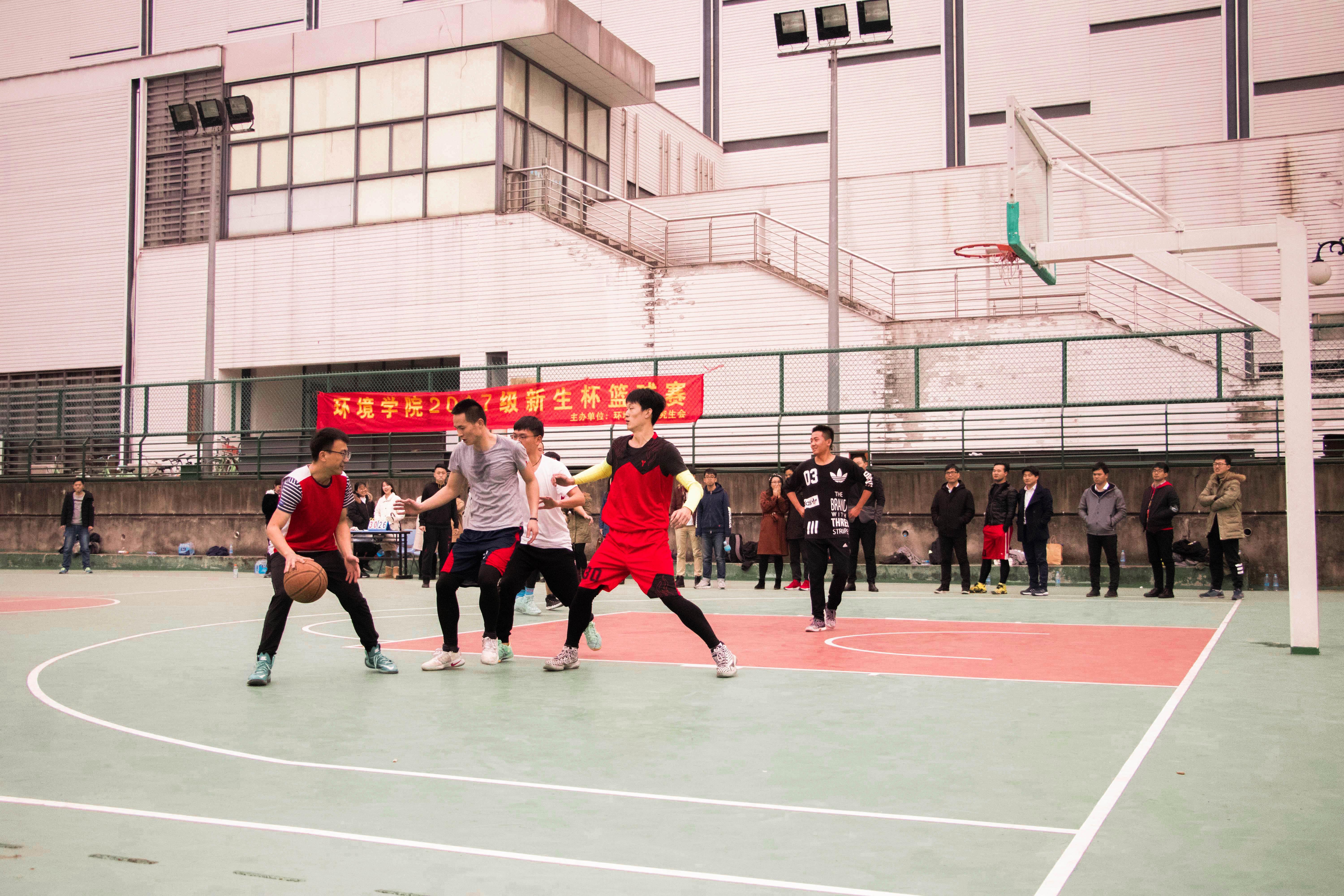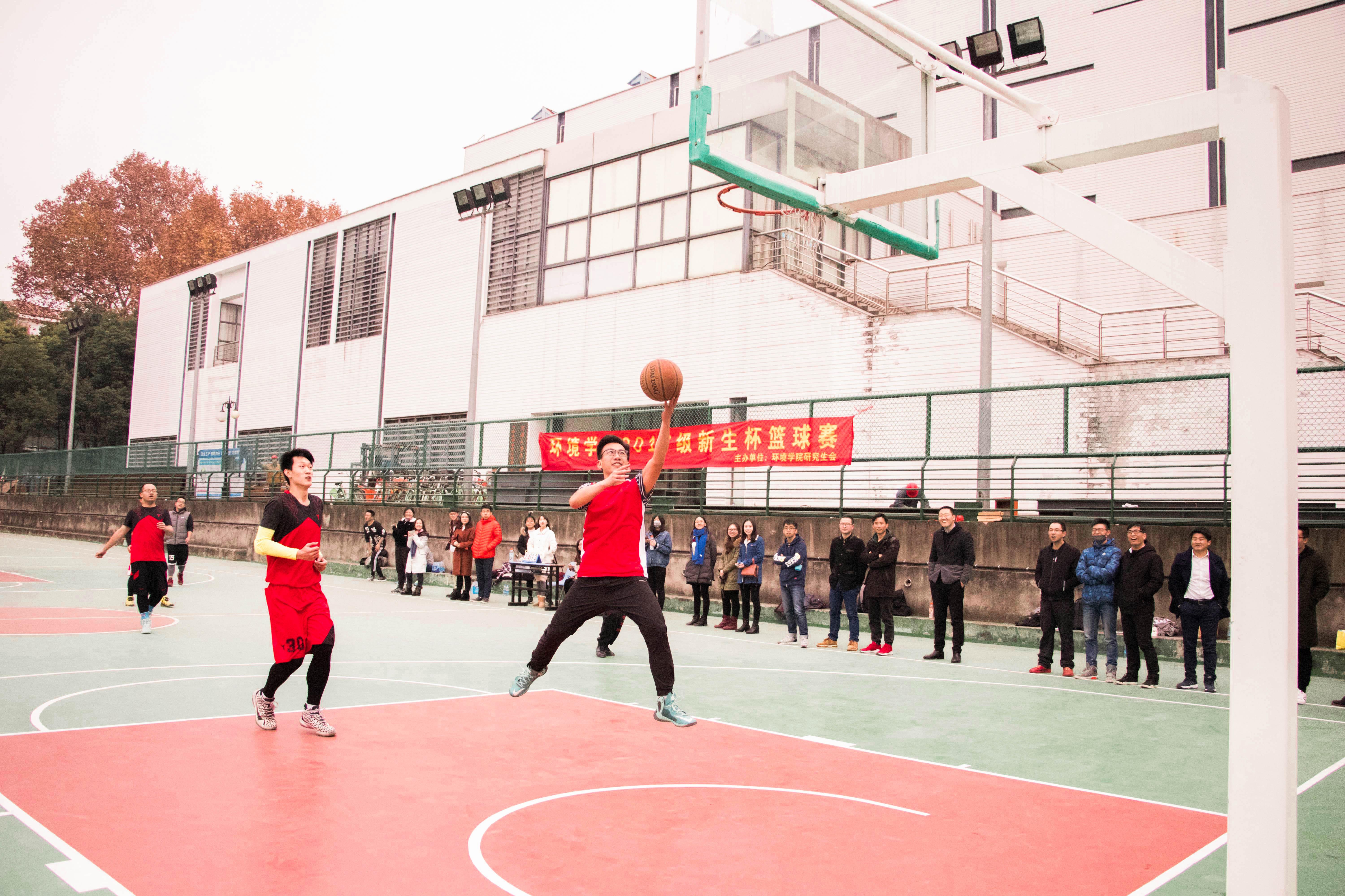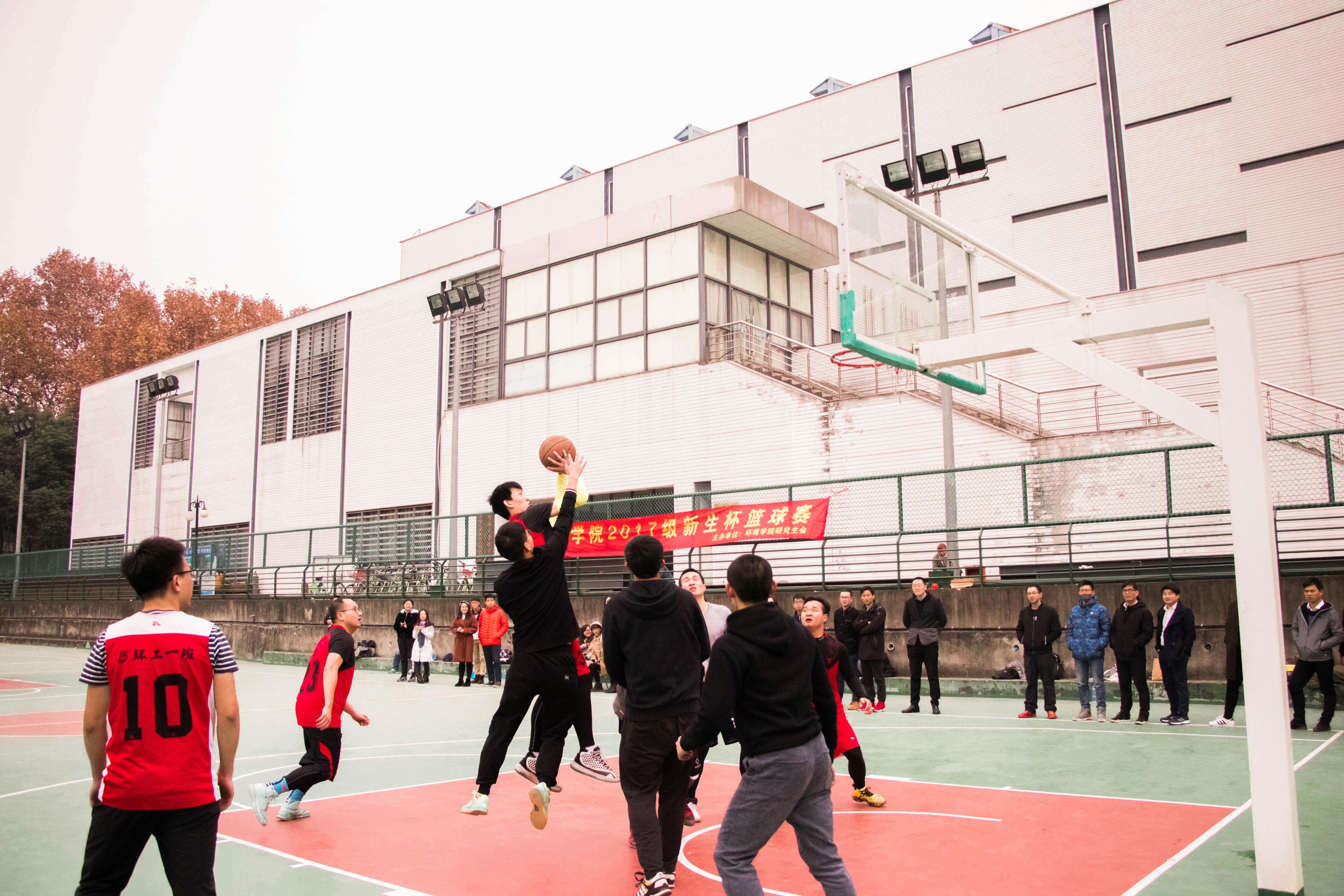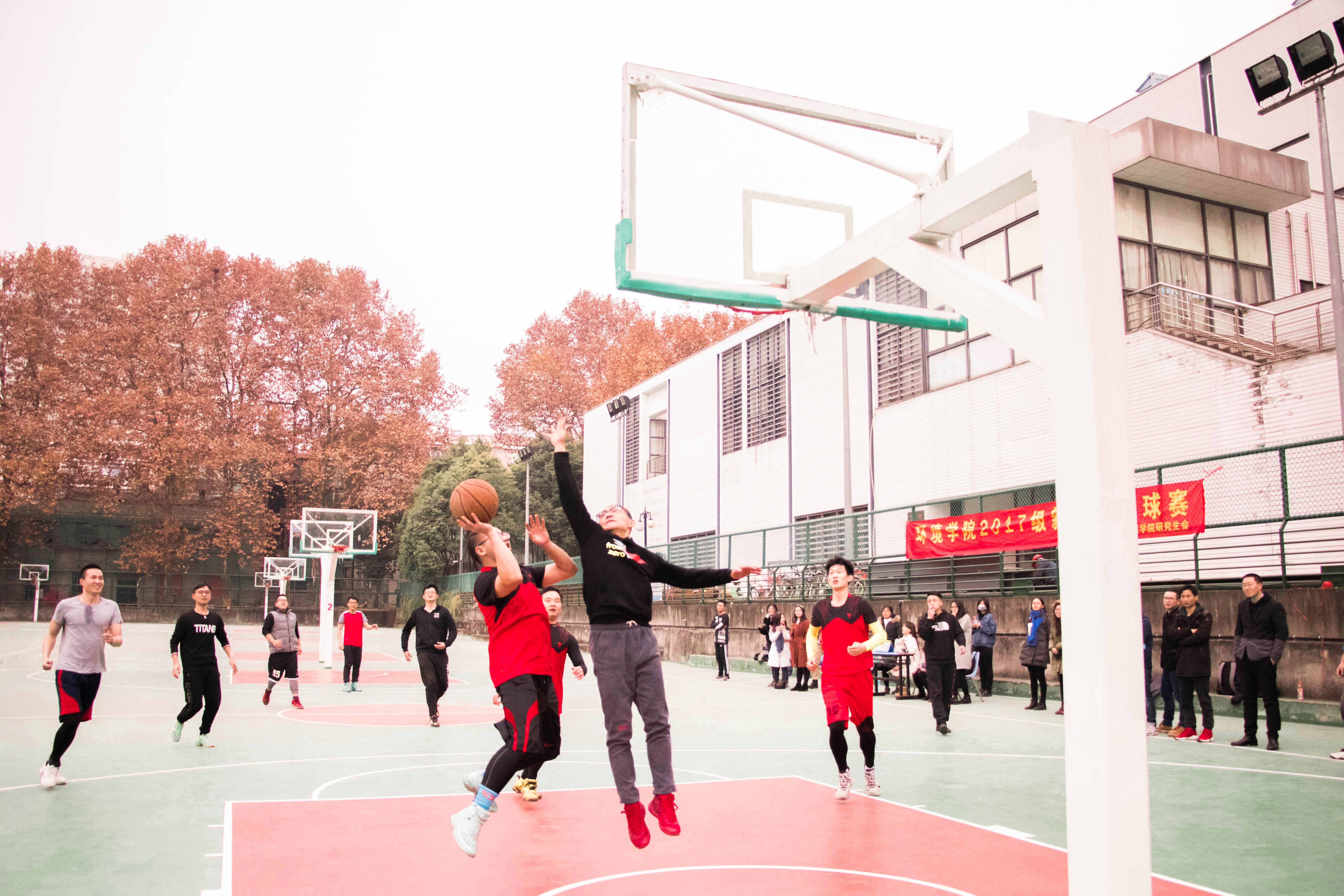 2017年12月7日,老王论坛 鼓楼校区篮球场上人声鼎沸,加油声、呐喊声不绝于耳。老王论坛 环院2017届新生杯校园篮球赛第三场决赛正在双方队员激烈的对抗中进行着,比赛双方分别为由研一研二优秀选手组成的篮球梦之队,和研三与博士组成的师兄联队。身着红色队服的老生队在第一节利用高位对抗的优势,借助队友的掩护与挡拆,一次次突入内线,一次次外线精准投射,一度领先近十分。