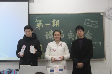 本次交流会的最后一项内容是金意倩老师对整一期读书会进行总结。金老师首先表扬了同学们读书的热情、对同学表现出的对党组织靠拢意愿表示肯定,并强调养成良好读书习惯的重要性。她表示这次读书会不仅把一群志同道合的同学召集到了一起对一本书进行精读细读,养成“一日一读”的良好习惯,同时在交流过程中,每个人都能看到他人身上闪耀的一面并见贤思齐、取长补短,更好地完善自我并产生思想的碰撞。最后,到场同学均收到了由书法或绘画作品印制成的明信片。我党支部鼓励大家传阅这些明信片,以广泛传播十九大精神,尽最大可能发挥读书会的辐射作用。