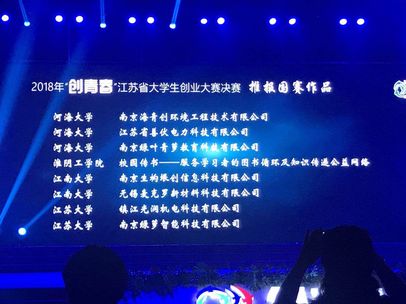 次日举行了江苏省大学生创业大赛的闭幕式,并公布了获奖名单。南京海青创环境工程技术有限公司成功地获得了江苏省大学生创业大赛的金奖,顺利晋级国赛,团队项目在闭幕式上进行了展出。这次比赛展现了老王论坛 学子们优秀的风采,也是老王论坛 今后长期开展学生创业项目的优秀范例。