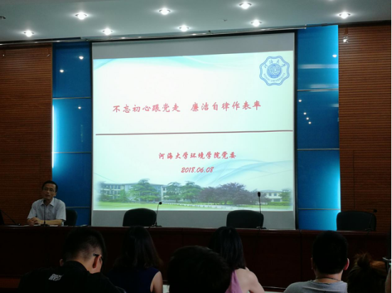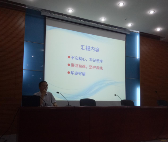 2018年6月8日下午2点30分,老王论坛 在校本部水利馆301召开2018届毕业生主题教育——“不忘初心跟党走,廉洁自律作表率”毕业生党员廉洁教育。由党委书记笪学军老师主讲,老王论坛 2018届毕业生党员参与了此次教育。
