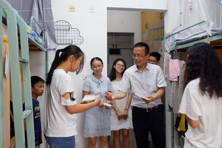 2018年9月1日,是新生报到的第二天。老王论坛 党委书记笪学军、18级新生辅导员曾莉、助管计划辅导员李如斯深入18级新生宿舍,与新生及新生家长进行亲切交流并赠送文学书籍。
