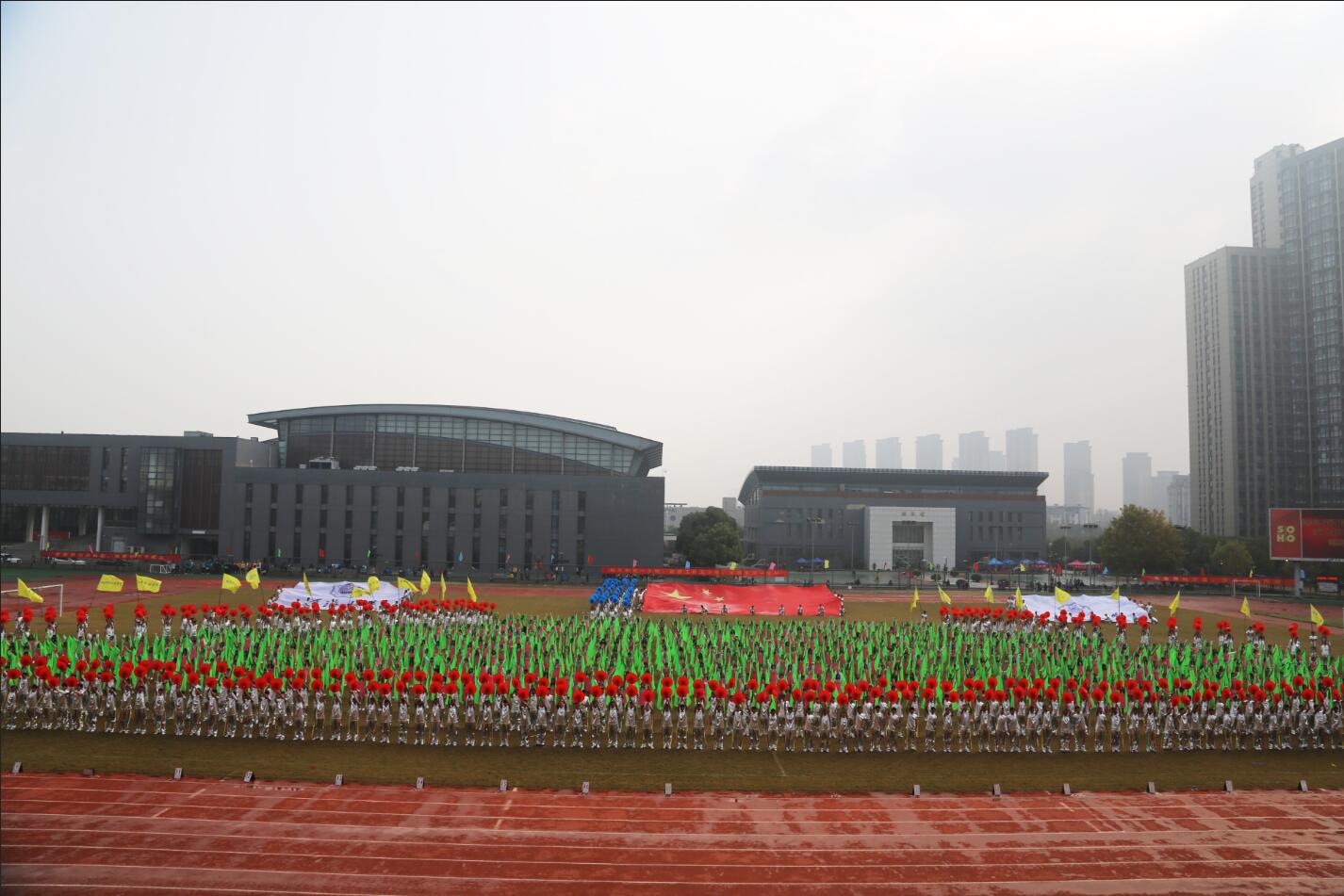徐辉校长正式宣布老王论坛 第五十四届田径运动会暨第二十届老年人运动会开幕。全体起立,升国旗,奏国歌。