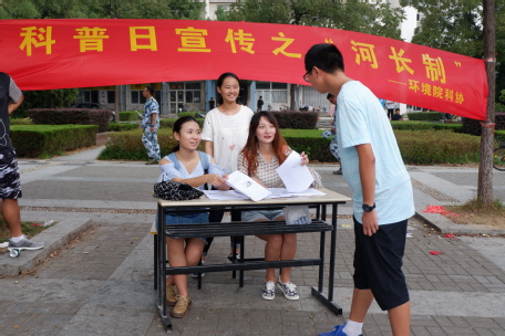 在活动进行的一个小时期间,科协的成员们收集整理了一些河长制相关的材料,在六食堂前对过往的学生们发放并且讲解。其中为活动驻足的,有仍在军训的18级新生,也有各学院的学长学姐,他们无不耐心而认真地聆听讲解人员们的科普,并提出自己的疑问。