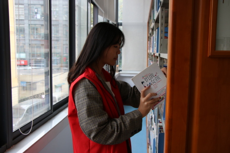 值得注意的是,志愿者尤其注重在图书馆内保持安静。在整理图书的过程中志愿者们都放轻了动作,生怕打扰到认真阅读的读者们。