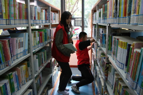 虽然志愿者们认真地聆听了工作人员讲解的相关事宜,但在开始整理图书时志愿者们动作仍显笨拙生疏。随着一次次书籍的正确归位,志愿者们的动作逐渐加快,准确率越来越高。