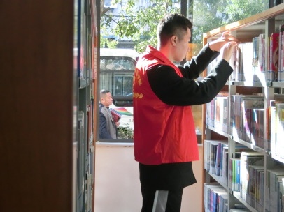 在听了图书馆工作人员的耐心讲解后,初次参与图书整理志愿活动的志愿者们也能开始着手图书整理工作了,他们虽是新手,却丝毫不逊于有经验的志愿者们。归还处的图书堆积了一本又一本,但志愿者们始终耐心地在书柜之间来回奔走,细致地将图书放置在指定位置。尽管总是有不了解摆放规则的读者将图书放错位置,但志愿者们总是不厌其烦地将错位的图书一一抽出并将其重新归位、摆放整齐。穿着红色马甲的身影在一排排书架之间穿梭,他们就像初冬的太阳,无声地给图书馆带来温暖。