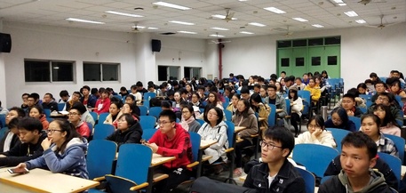 首先开始的是PPT讲座,由杨思学学姐为大家讲解PPT的使用。学姐首先放映了一段精彩的视频,并且告诉大家,这个视频就是由PPT制作而成。这个视频激发出了在座同学们的好奇心,放映结束后,大家都专心聆听杨思学学姐的讲解。在本次讲座中,学姐为大家耐心而详细地讲述了PPT的图形绘制、图片处理、图表设计等功能以及相关的典型案例。而学姐讲解时用的PPT就是一份优秀的案例,生动形象地为大家展示了PPT的强大功能。