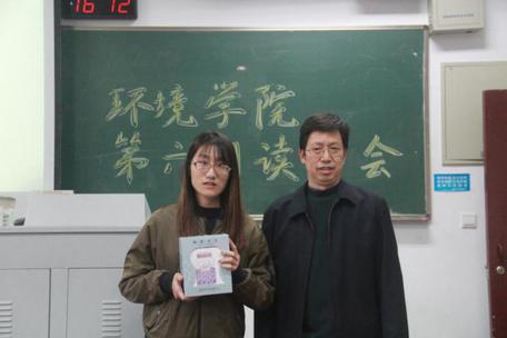 本次读书会经过读书笔记和绘画作品的评比,共评选9位获奖同学。他们分别是一等奖获得者华夏;二等奖获得者杨万航、肖弦、杭之昊;三等奖获得者舒茜娜、岳楠、戴志欣 、周青青、何德敏.获奖同学分别由环境院16级辅导员金意倩老师和马克思主义学院黄明理教授颁发奖品。