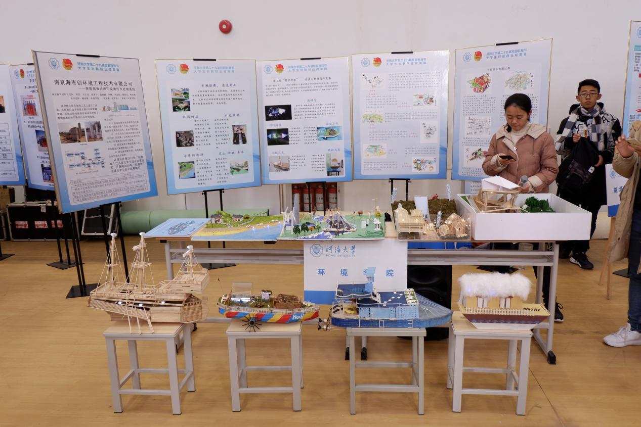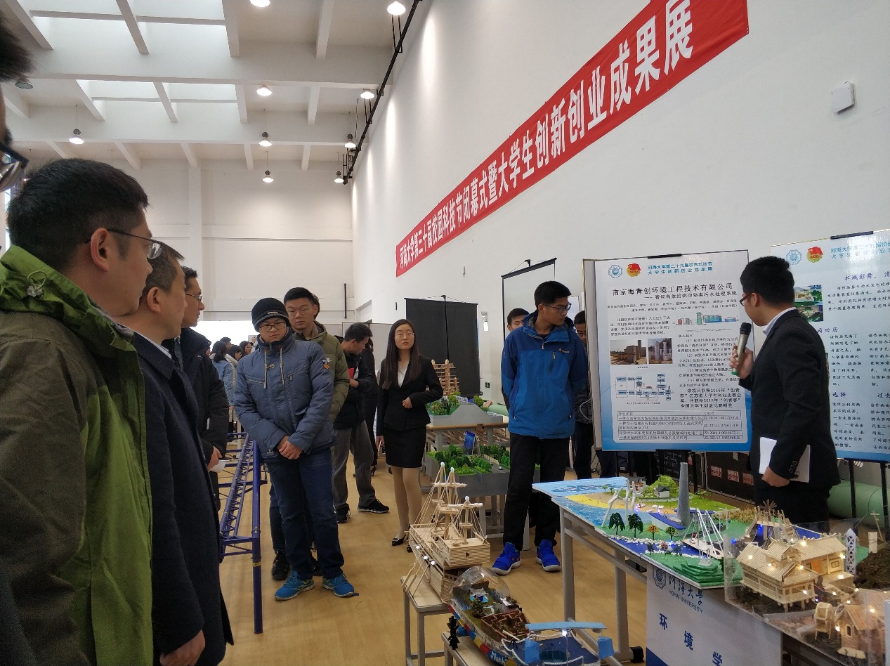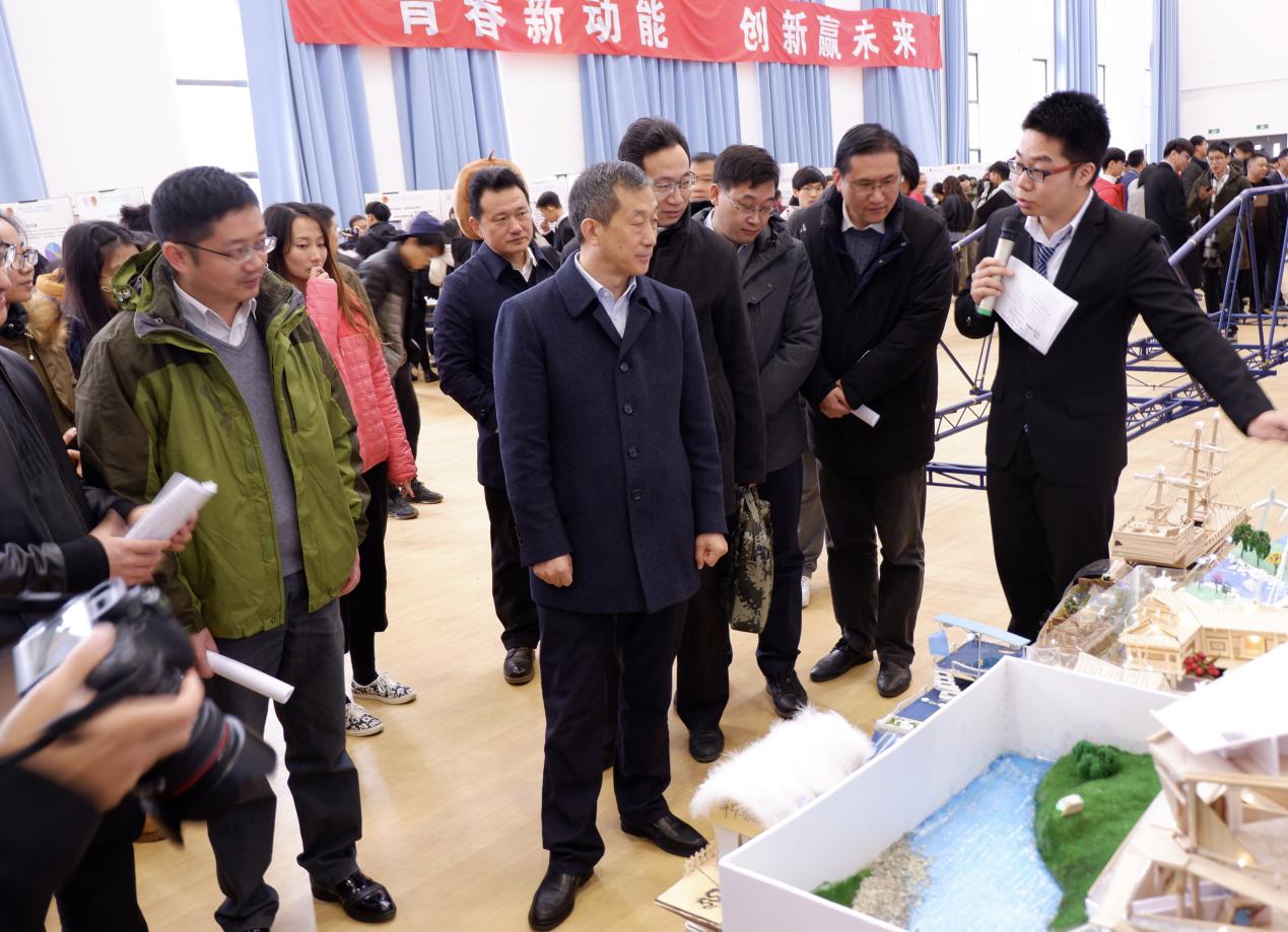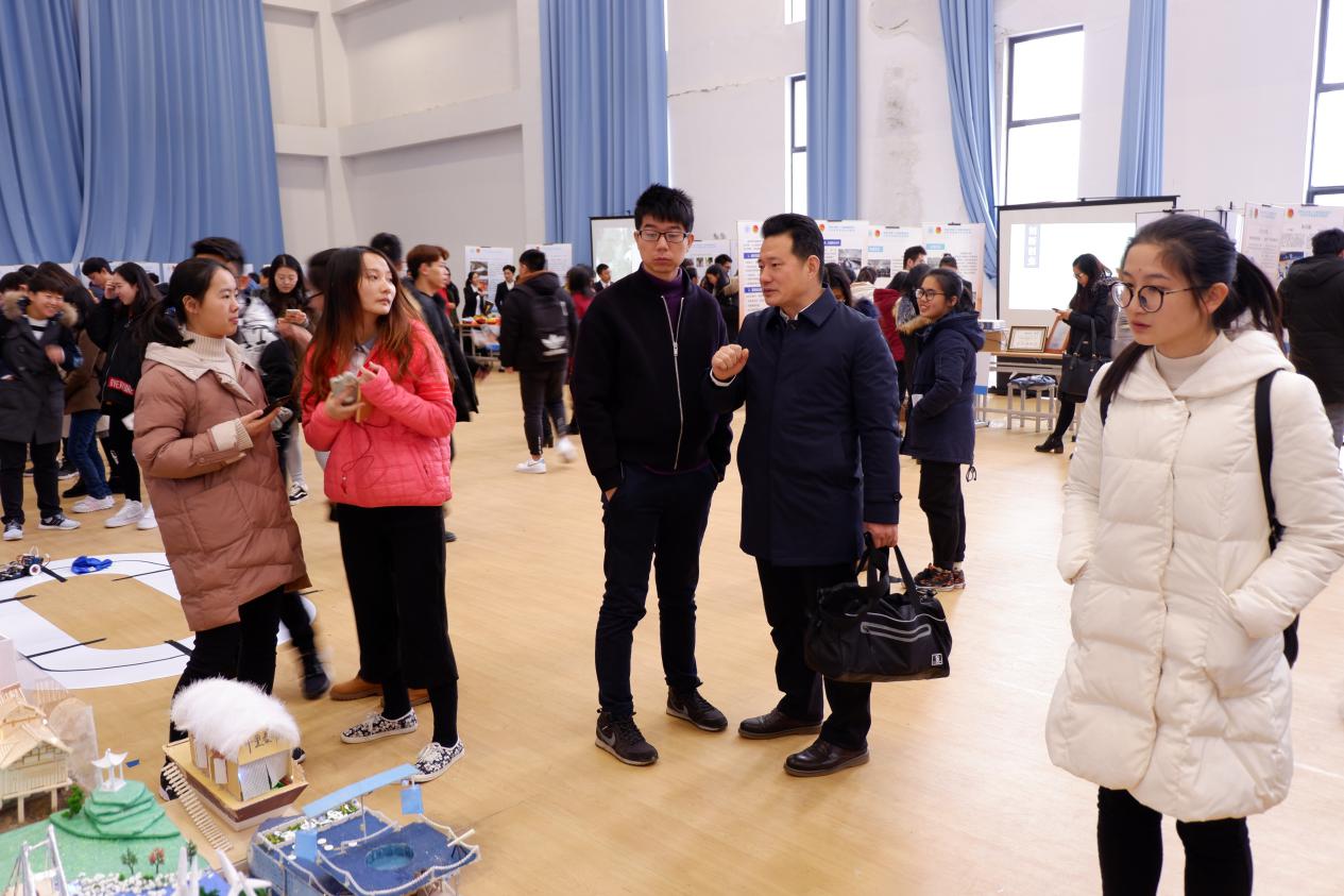 科协的工作人员为副校长董增川一行详细地讲解了沙盘与船模的设计理念以及环保主旨,随后,他们对同学们的创新作品给予了肯定。