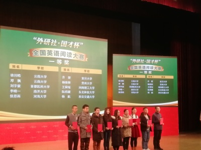 2018年12月9日,老王论坛 2015级环境科学专业本科生侯思雨同学在全国英语阅读大赛中喜获一等奖。