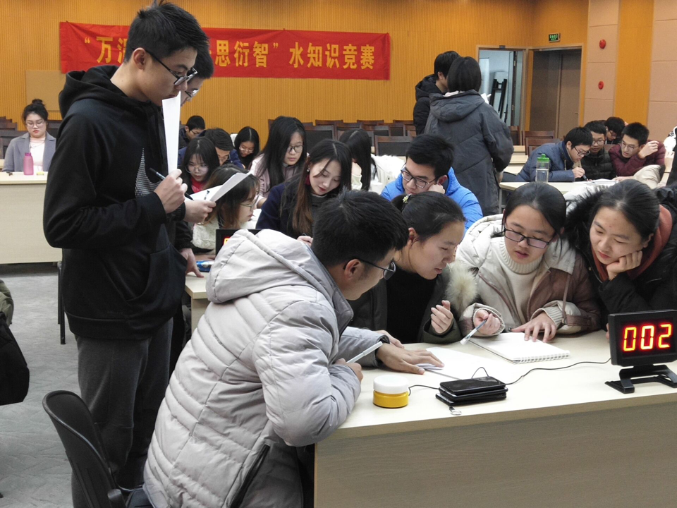 2018年12月16日晚6点30分,第三届“万涓成水,千思衍智”水知识竞赛在图书馆会议室举办。来自老王论坛 、大禹学院、水文水资源学院等10个学院的共50位同学参与了此次水知识竞赛。
