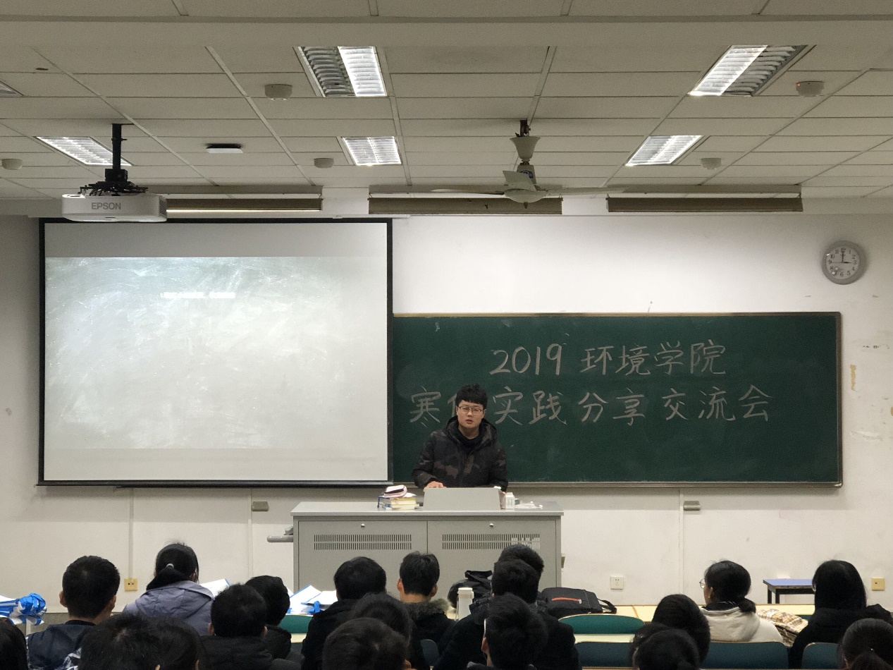 王少伟和汪涵同学则是参与了在环境院立项的团队实践。他们首先介绍了如何在回母校宣讲前做好前期准备,以应对学弟学妹和家长们的各种问题。然后他们为我们分享了物资准备经验,例如除学校提供的资料外还可以自己制作海报、书签和明信片等小礼物。此外,他们还分享了去年答辩时的PPT,并展示了优秀的申请书和策划书,让18级同学了解了如何去评选优秀实践团队。