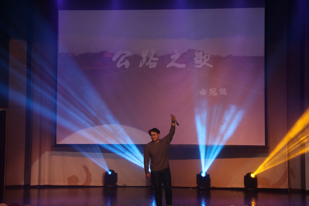 期间还有抢凳子、猜歌名此类普通又容易激起听众热情的游戏,现场气氛活跃,极大地调动了观众的积极性。还有三名水文院导师分别献唱《悟空》、《公路之歌》、《画心》三曲,他们展现出扎实的歌唱功底和强悍的实力,带着大家的心在跳跃的音符间蹦跳。
