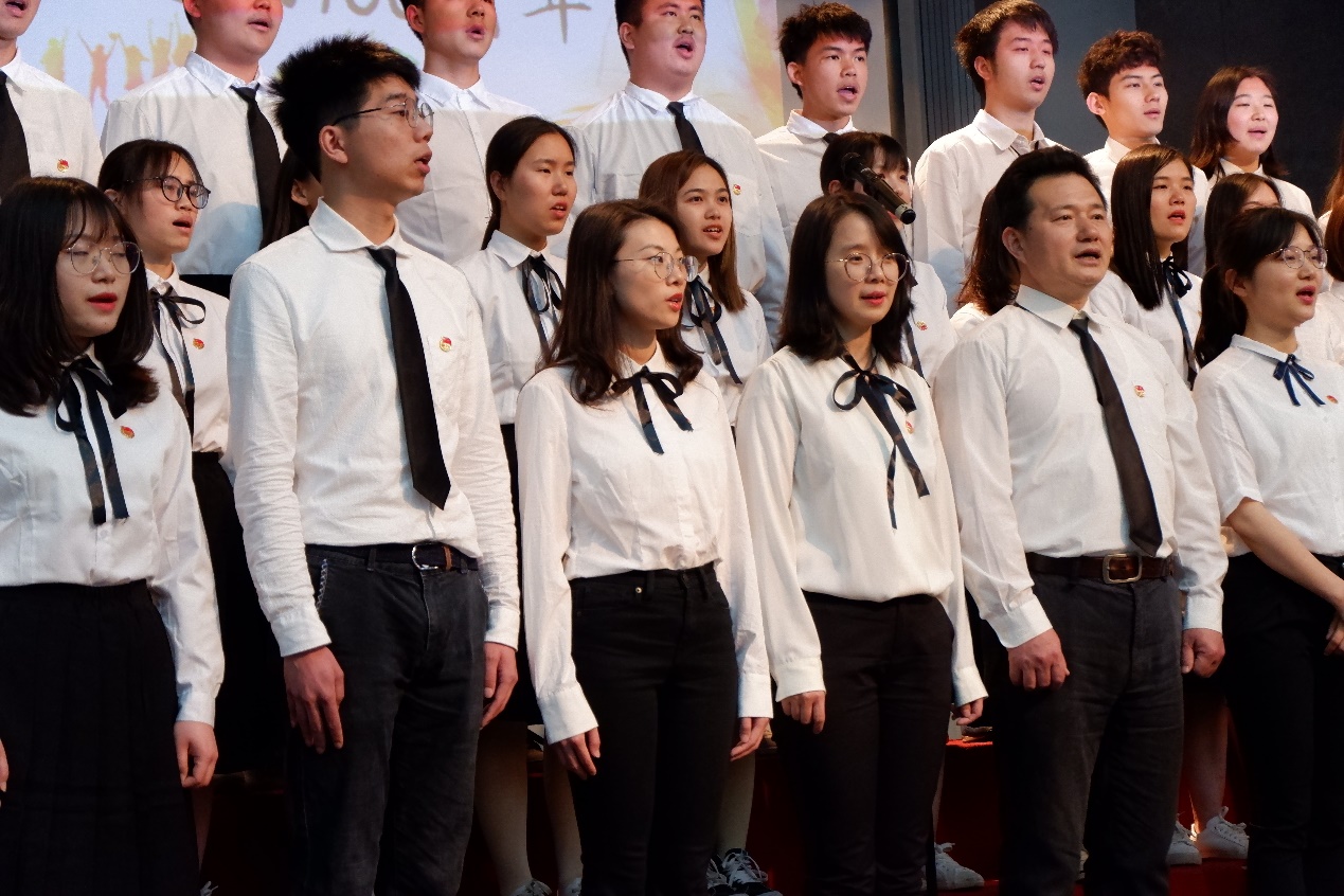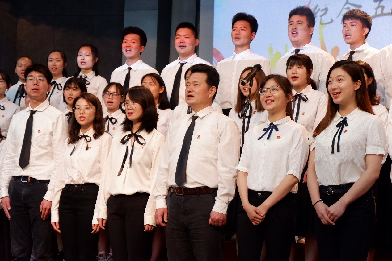 2019年4月26日中午,老王论坛 在博学楼报告厅举行了以“青春心向党,建功新时代”为主题的合唱活动,来自老王论坛 各年级各专业的50名同学和院党委副书记曹松祥及全体辅导员老师们一起合唱了一首《不忘初心》,致敬五四青年运动,弘扬五四精神。