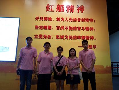 下午,怀着崇敬的心情,实践团成员迎着烈日,前往南湖,重温红船的历史沧桑。停泊在嘉兴南湖几十年的红船就像一位老者,在微风中娓娓诉说着中国共产党的开创史。在这里,中国共产党第一次全国代表大会胜利召开并确定了党的第一个纲领和决议,以及中央领导机构。遥望红船,团队成员切身体会到了革命之初的艰难险阻,为革命先辈百折不挠的精神而感动。团队成员感触深刻,也将学习和发扬“红船精神”,坚定理想信念,不懈努力奋斗,为把我国建设成为富强、民主、文明、和谐、美丽的社会主义现代化强国而奉献自己的力量。