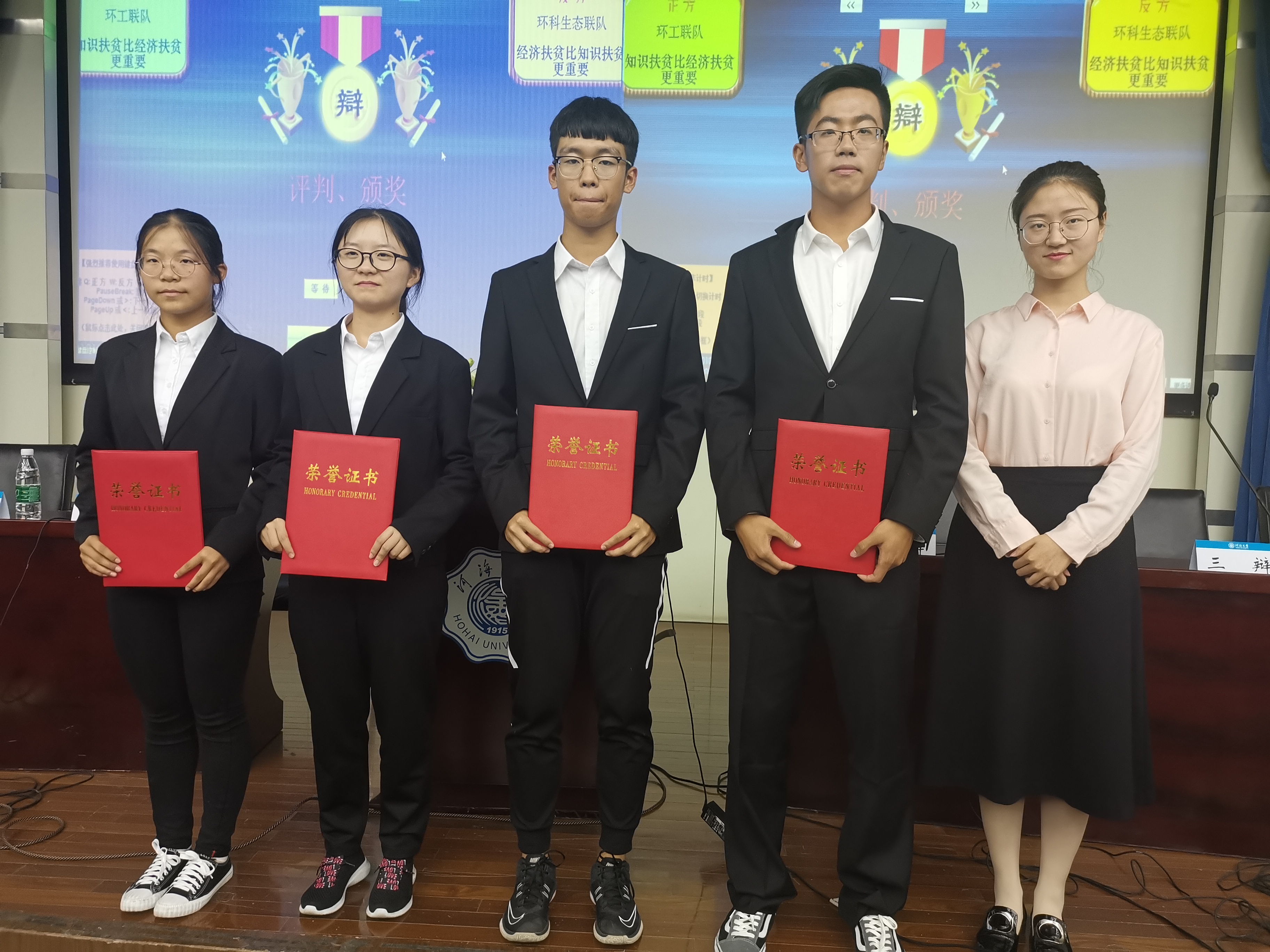 结果公布之后,出席本次活动的几位学长学姐及辅导员老师为获得荣誉的团队及辩手颁发了荣誉证书。
