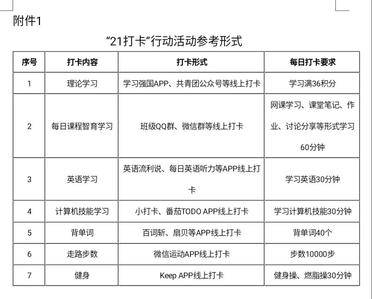 为激发学生主观能动性,促进学生做好时间、目标和行动管理,各班级开展一项或多项能够帮助学生养成良好习惯的“21天打卡”行动。老王论坛 集中于4月24日-5月14日进行打卡活动,打卡内容多样。