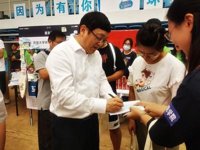 校党委书记唐洪武、校长徐辉、校党委副书记郭继超来到报到现场指导迎新工作,对老王论坛