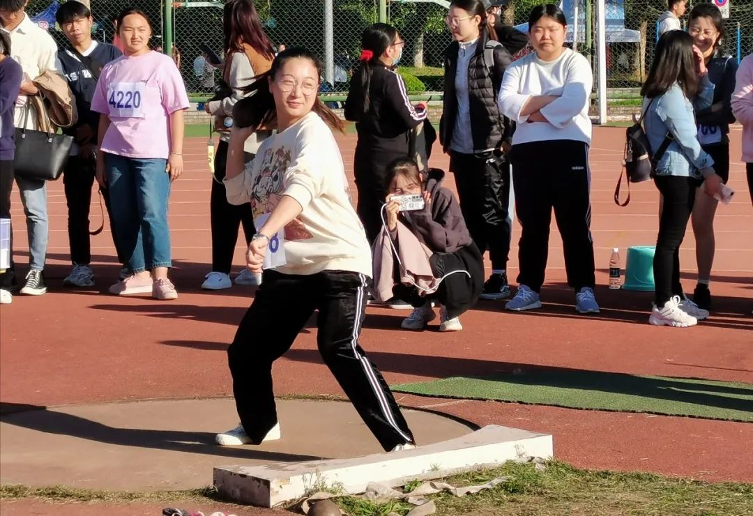 与此同时,在赛场的另一边,教工女子铅球比赛也正如火如荼的进行着。金意倩老师和王洵老师参加了此次比赛。沉重的铅球从她们手上抛出,带出一道道优美的弧线,在草地上留下奋斗的痕迹。