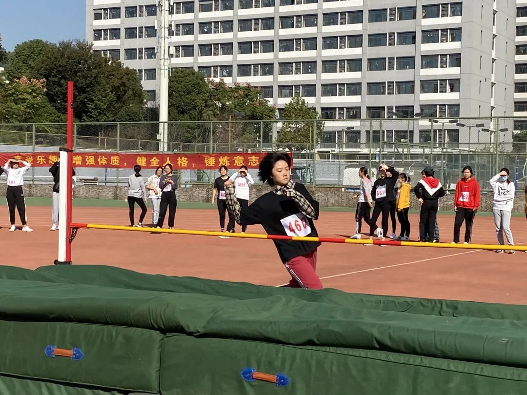 于此同时,在另一个场地中进行的女子跳远比赛中,詹玥同学、龚怡宁同学、韩清云同学也不甘示弱。她们身轻如燕,纵深一跃,便在天空中留下一道美丽的弧线。最终,詹玥同学和韩清云同学分别获得了全校第三和全校第五的好成绩。