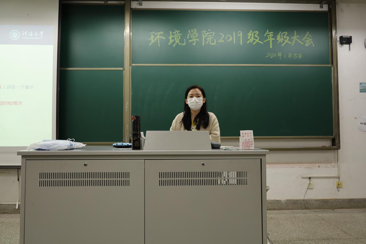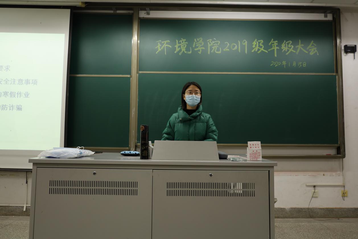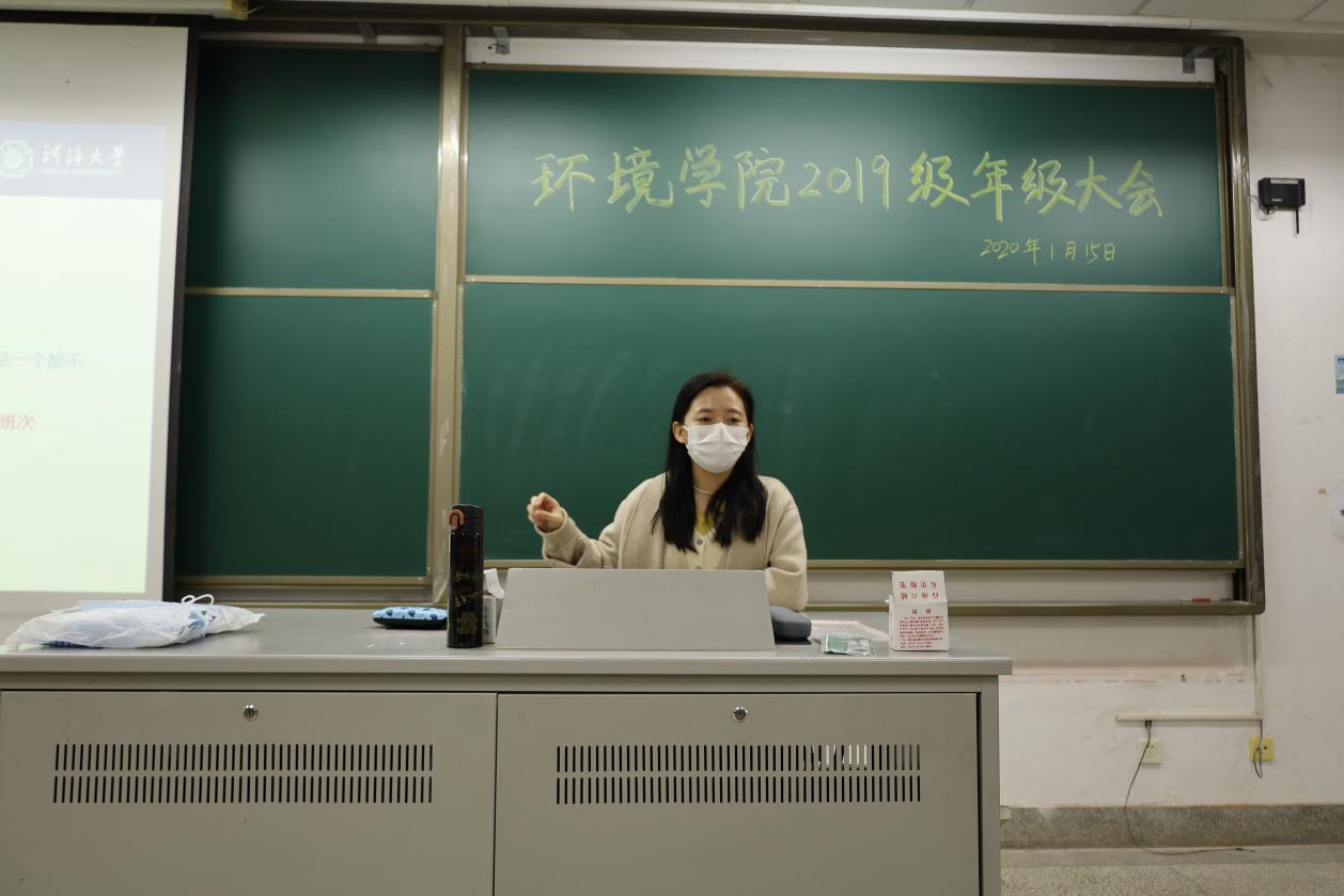 2021年1月15日下午,为确保同学们能够度过一个安全愉快的假期,老王论坛 2019级年级大会在致用楼101举行。参会人员有环境院2019级辅导员扈雅璐和程萌老师以及2019级全体同学。
