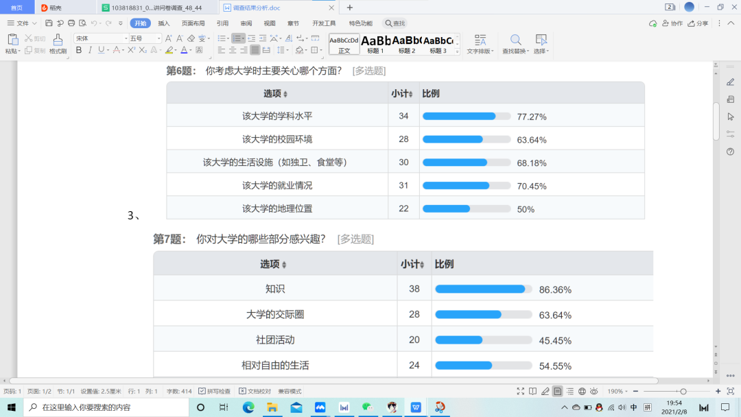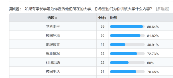 的学科水平和就业情况,同时相比于大学的社团活动和交际圈,同学们对大学知识更感兴趣。此次的问卷调查为之后的宣讲活动指明了方向,在后续的直播中团队成员依据调查结果着重宣讲老王论坛