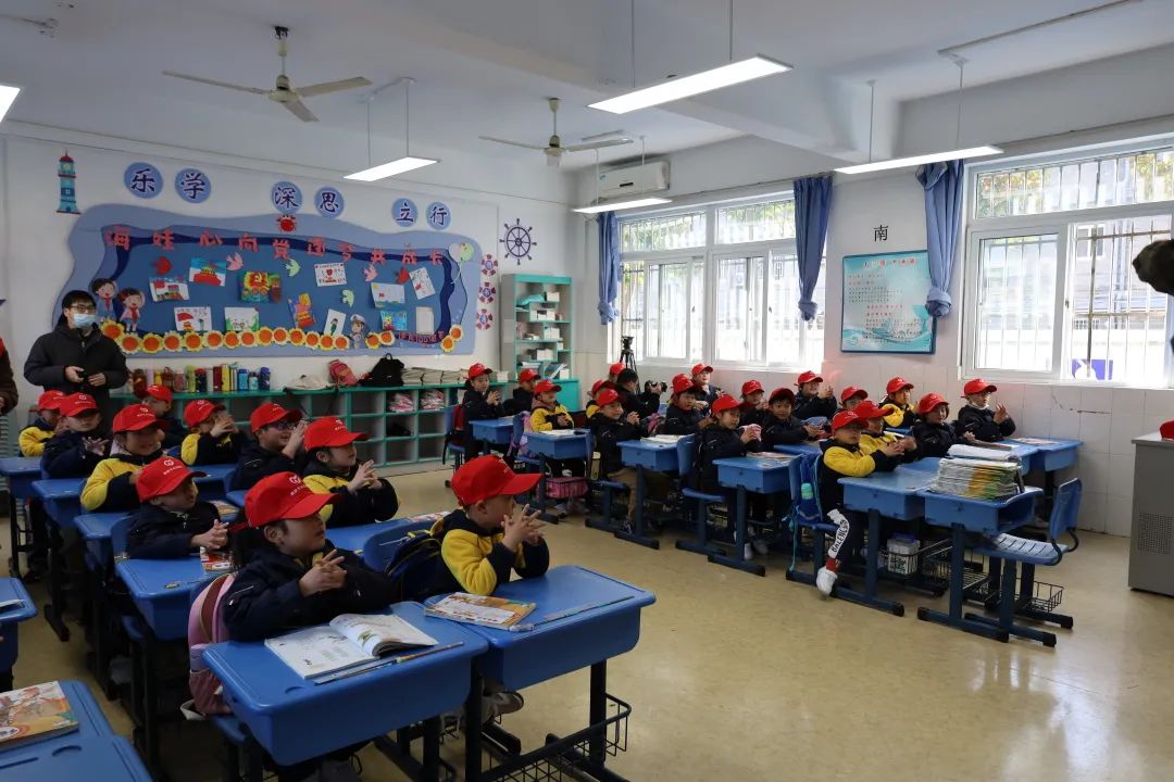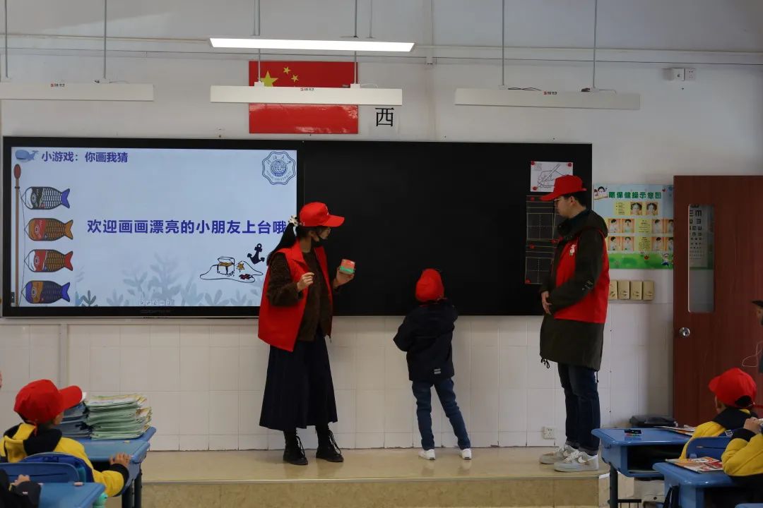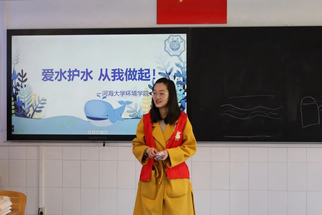 升旗仪式结束,志愿者们分为两组,到两个班级中开展用水思源、节水源远的主题班会。