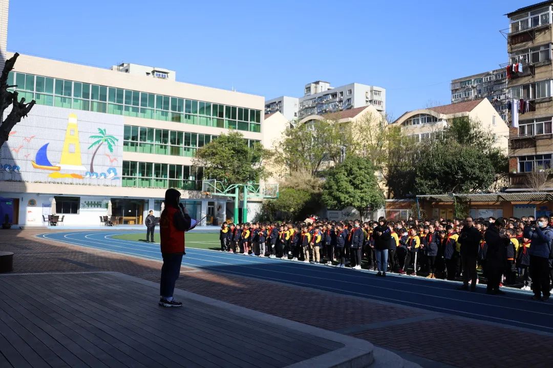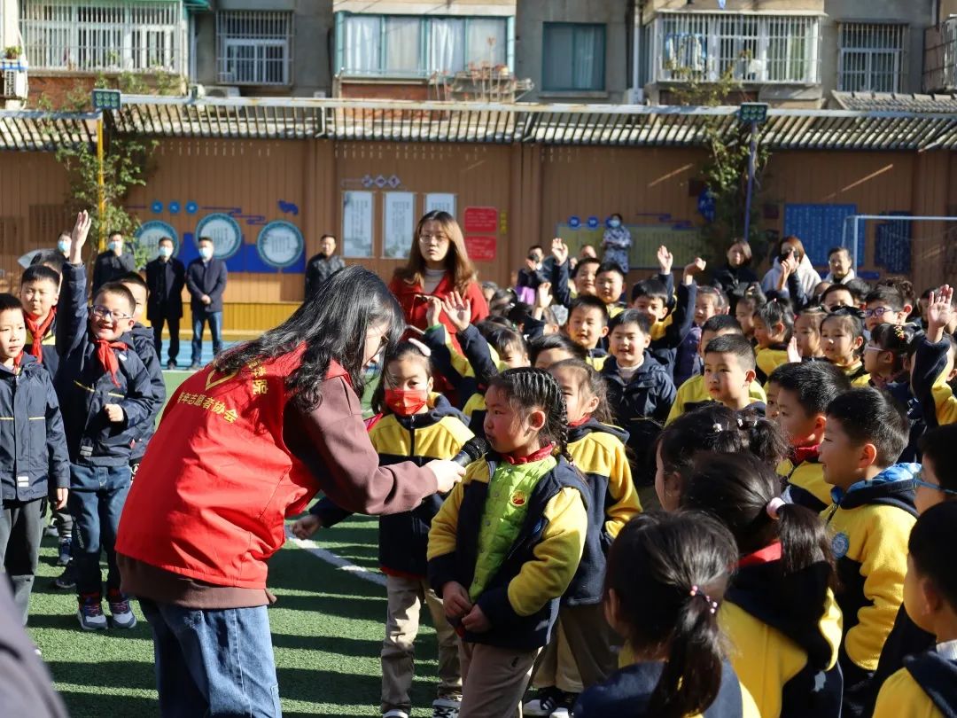 当五星红旗高高升起,志愿者进行了国旗下的演讲,为海英小学全校师生讲解节水的重要性。演讲结束后,志愿者们走进了学生的队伍里,与学生们进行节水问答的亲密互动,为学生们带来了丰富的节水知识。