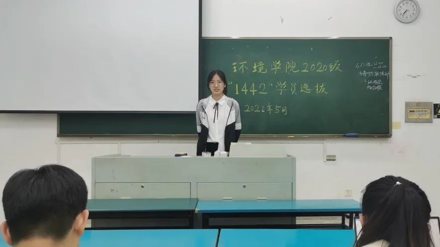 成员按照顺序依次进入教室进行面试。同学们大多从学习成绩,学生工作,性格爱好等方面来进行自我介绍。在完成自我介绍后,成员们从桌上随机抽取题目进行作答。问题包括国家政策,学校政策,个人感受等多个方面,充分体现了“1442”工程的核心宗旨:在大众化教育背景下培育高素质,全面发展的精英型人才。