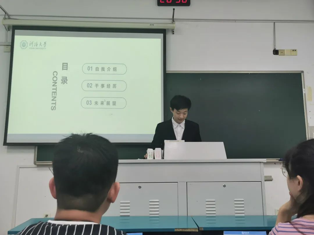 本次换届答辩中,共有17位候选人参加主席团换届竞选,24位候选人参与部长级换届竞选。答辩开始,各位竞选人就个人介绍、学生工作经历与成果以及未来展望与策划进行了PPT展示与个人演说,也就自己的工作能力与性格特色进行了详尽的阐述。