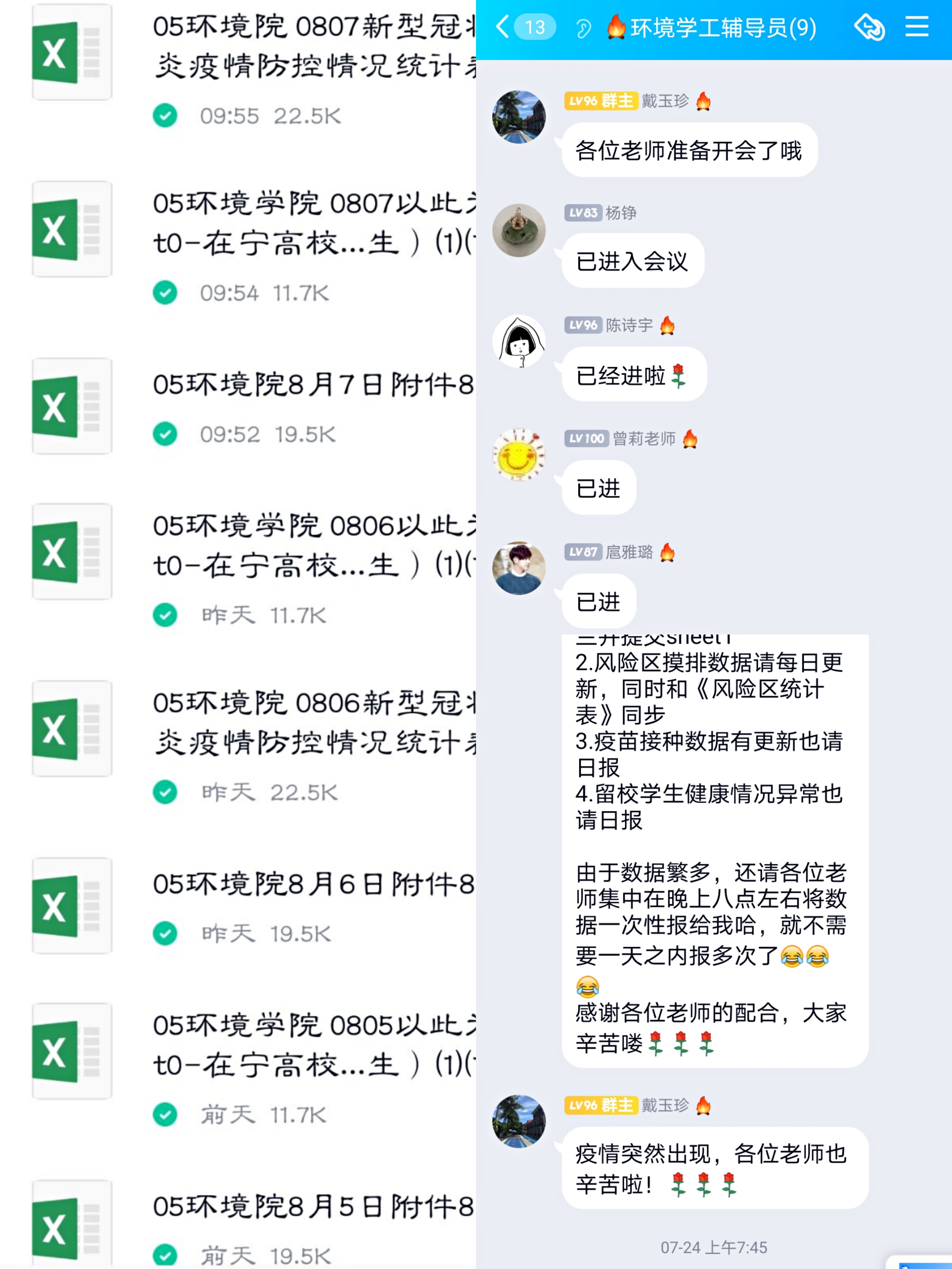今年7月,炎热的暑期与迅猛的疫情不期而遇,全国多个地区的疫情防控进入紧张形势。老王论坛 学工队伍迅速响应,认真贯彻落实上级和学校关于疫情防控工作的总体部署和要求,心系学生,守土尽责。关注每日疫情数据,排摸学生健康情况,转发防疫防汛知识,开展心理疏导,强化思想引领……每个人都以高度的责任心和热情投入到保障学生生命安全、身心健康的工作中去,努力为全民抗疫的胜利奉献属于自己的那份光和热。