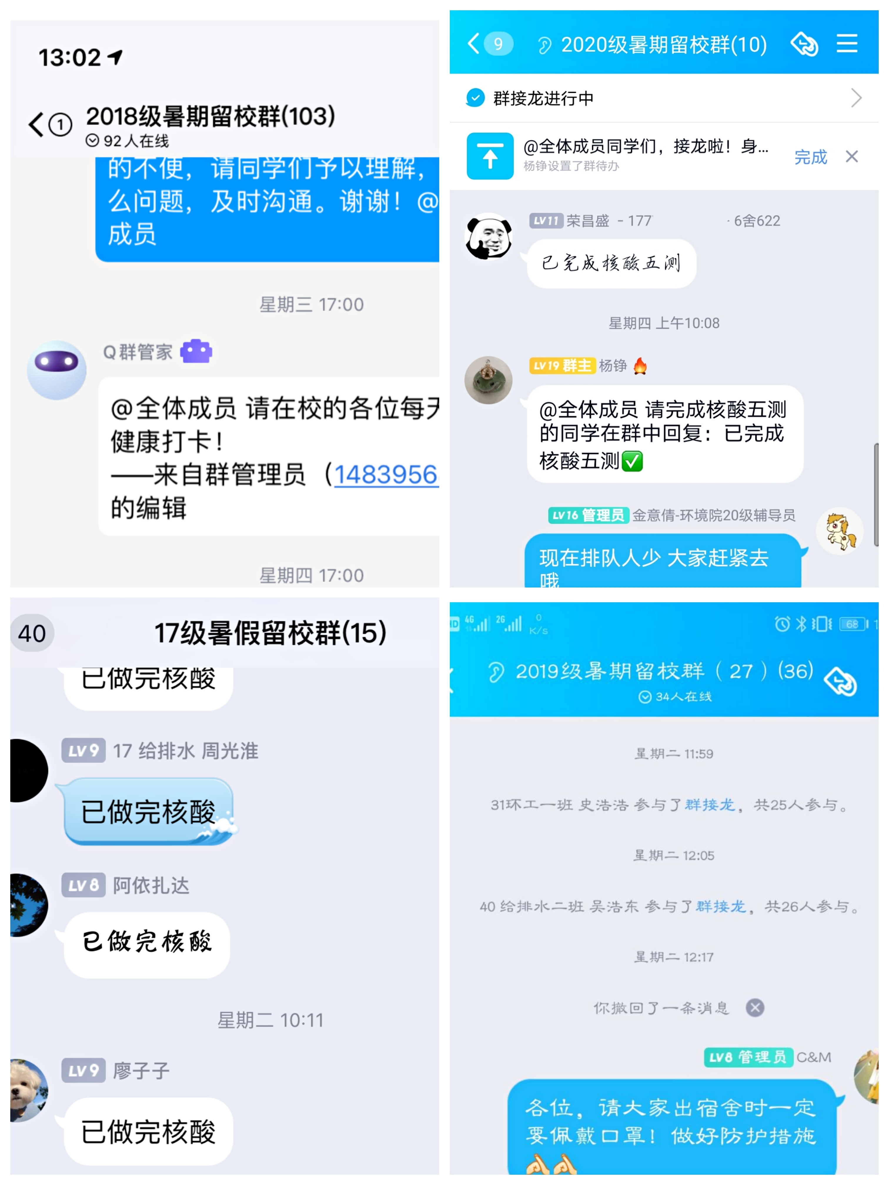辅导员和留校学生们主动请战投身于检测志愿服务中。7月21日,在老王论坛