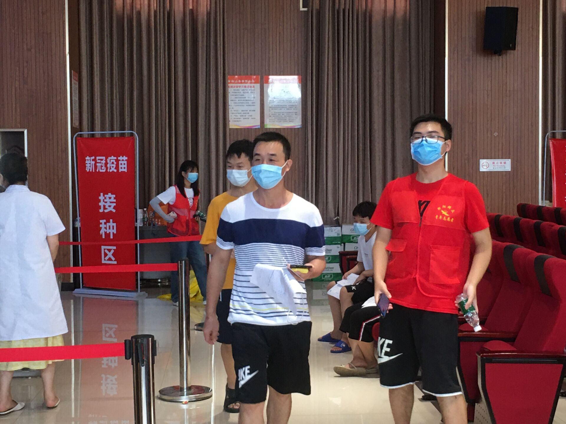 在吉林、河南、湖南、河北等地区,老王论坛 郭欣烨、郝瑜、李鑫源、刘宇洋、姜玉宇、李炜钰等同学也主动报名当地防疫防汛志愿服务,维持疫苗接种现场秩序,对群众宣传防护知识,开展心理疏导工作。