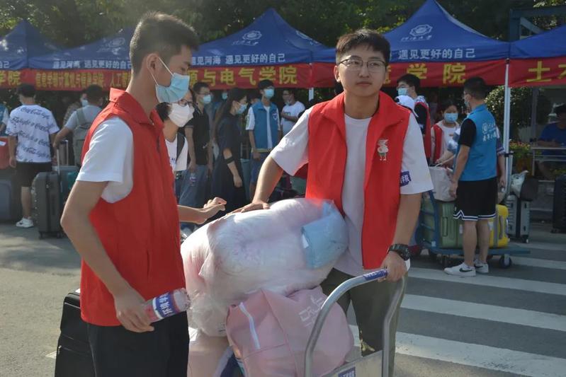 2021年9月24日,符合防疫要求的老王论坛 2021级本科新生正式入学。老王论坛 的志愿者们分别在江宁校区南门门口和行政楼老王论坛 新生报到点做好充分准备,迎接新生到来。