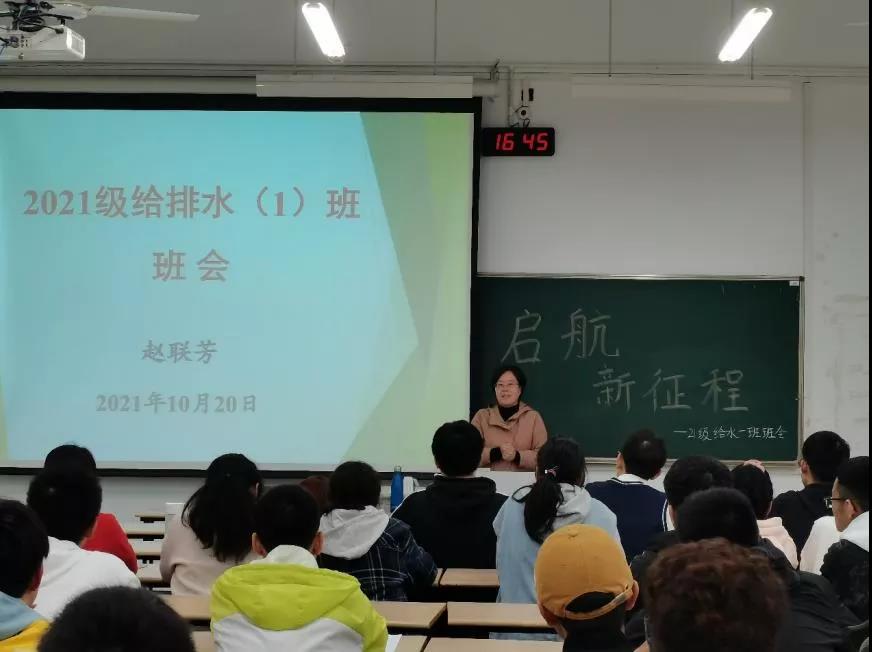 主题班会以精彩温馨的个人介绍ppt开篇,五位同学依次谈及自己对大学生活的初印象并分享了自己在大学里的目标,但同学们都意识到大学生活与自己想象中的大相径庭。为了进一步解答同学们的疑惑,助学导师凭借着个人经历,以一个个风趣生动的故事向描述亲身经历的大学生活。而班导师则从我校给排水专业的历史,培养特色,毕业要求,课外学习和未来去向等方面,全面地将大学学习内容呈现给同学们,让同学们了解到,只有在学习和生活中都颇有收获的大学生,才是一名合格的大学生。