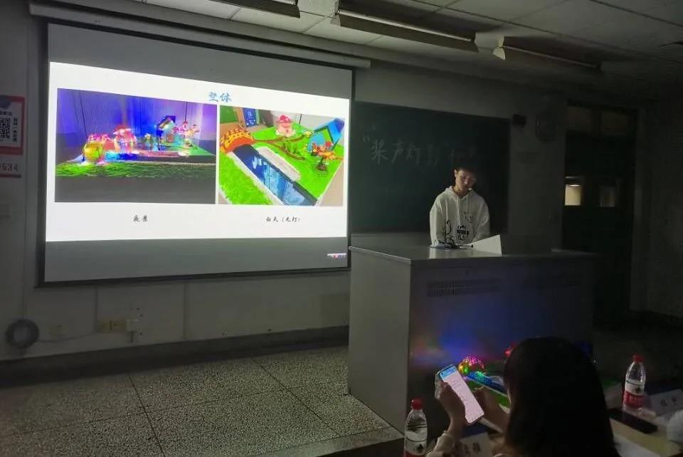 桨声灯影,取自中国著名文学大家朱自清的《桨声灯影里的秦淮河》,本次比赛旨在利用作品表现出对环保的关切、对于水与光以及结构之美的理解。参赛选手们结合比赛主题与老王论坛 的绿色环保宗旨,利用环保材料进行作品制作。同学们依次上台进行展示与答辩,沙盘作品展现出灯光的色彩绚丽、变化多端,并将水与光完美结合;船只作品在静水中展现其一定的稳定性,美观大方、颜色优雅。评委从环保、作品表现、难易程度和细致程度对参赛作品进行打分,与同学们交流作品内涵意义并给予鼓励。
