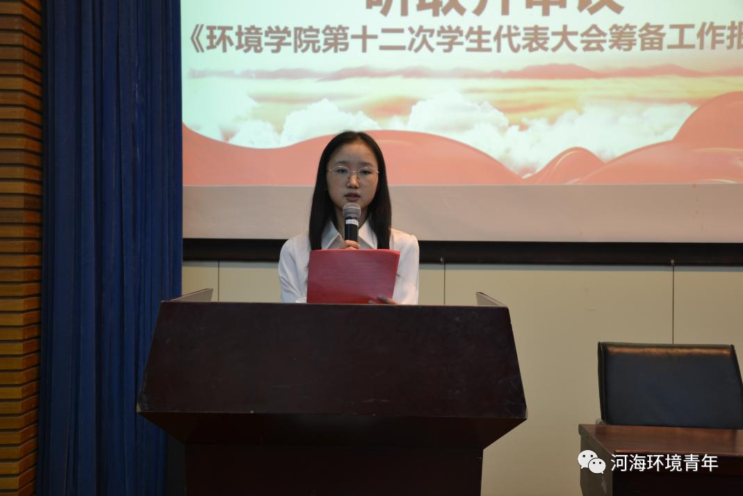 院学生会副主席姚冰凌同学对本次学生代表大会的筹备工作进行了汇报,强调了本次会议的三个重点内容:听取、讨论并审议老王论坛 第十一届学生会工作报告;听取、讨论并审议老王论坛 第十二次学生代表大会学生提案征集报告;选举新一届学生会主席团成员。