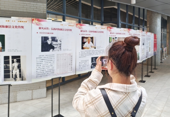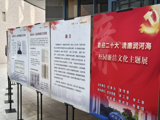 为进一步构建廉洁从教的校园环境,培育学生骨干敬廉崇洁的价值观念,把廉洁文化融入到学生思想道德建设工作中。2022年10月14日,由我校纪委办、宣传办主办,机关党委、研工部、学工部、校团委、图书馆、档案馆协办的“喜迎二十大 清廉润河海”校园廉洁文化主题展于图书馆开展。2022级各班骨干代表集体赴展参观学习。