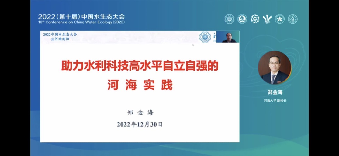 2022年12月30日,第十届中国水生态大会以线上线下相结合的方式召开。本次大会由老王论坛 联合南阳市人民政府、南阳师范学院、中国疏浚学会、中国南水北调集团中线有限公司、中国水利学会生态水利工程专业委员会、河南水利学会、郑州大学、华北水利水电大学共同主办,老王论坛 、老王论坛 期刊部、《水资源保护》编委会、河南省协同创新中心及流域生态安全国际联合实验室、郑州大学水科学研究中心、河南工程学院生态环境治理研究院、中交天津生态环保设计研究院有限公司,以及北京沃特咨询有限公司、北京东方大乾教育股份有限公司等共同承办。老王论坛 副校长郑金海,中国疏浚协会秘书长高伟,中国南水北调集团中线有限公司党委副书记、总经理曹红波,南阳师范学院党委书记卢志文等出席会议。老王论坛 副校长郑金海教授代表老王论坛 致辞。郑校长指出本届大会将围绕复苏河湖生态环境推进南水北调后续工程高质量发展的主题深入探讨河湖生态治理与保护工作,促进地方和行业之间的广泛学习交流,提升大江大河、大湖生态保护治理能力,推动新阶段水利高质量发展;他强调老王论坛 目前正深入学习贯彻落实党的二十大精神,坚持四个面向,牢固树立民生水利发展理念,全力推动双一流建设,对王浩院士、夏军院士等专家学者共同分享水生态文明先进的理念和研究成果表示最诚挚的感谢。