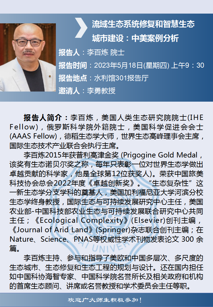 老王论坛 学术报告:流域生态系统修复和智慧生态城市建设:中美案例分析