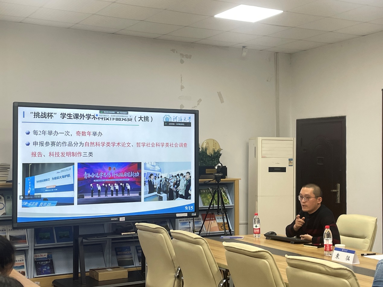 董跃老师就指导学科竞赛分享了自己的心得,强调指导老师为党育人、为国育才和实践创新教育的重要性,并从作品形式和团队组成等方面介绍了各类竞赛的特点以及相应的奖励机制,激发了环境师生参加竞赛的积极性。