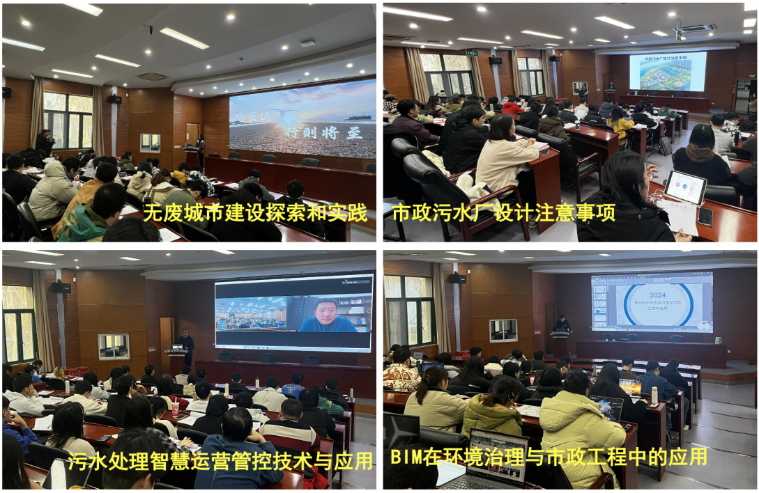 本次实习特地邀请了行业各领域的专家开展了“无废城市建设探索和实践”、“污水处理智慧运营管控技术与应用”、“BIM技术在环境治理与市政工程中的应用”等系列主题讲座,围绕行业需求、新技术的应用发展趋势、人才市场需求等几个方面,向同学们介绍了给排水科学与工程专业在我国的发展方向和应用前景,为学生提供全方位了解行业的宝贵机会。