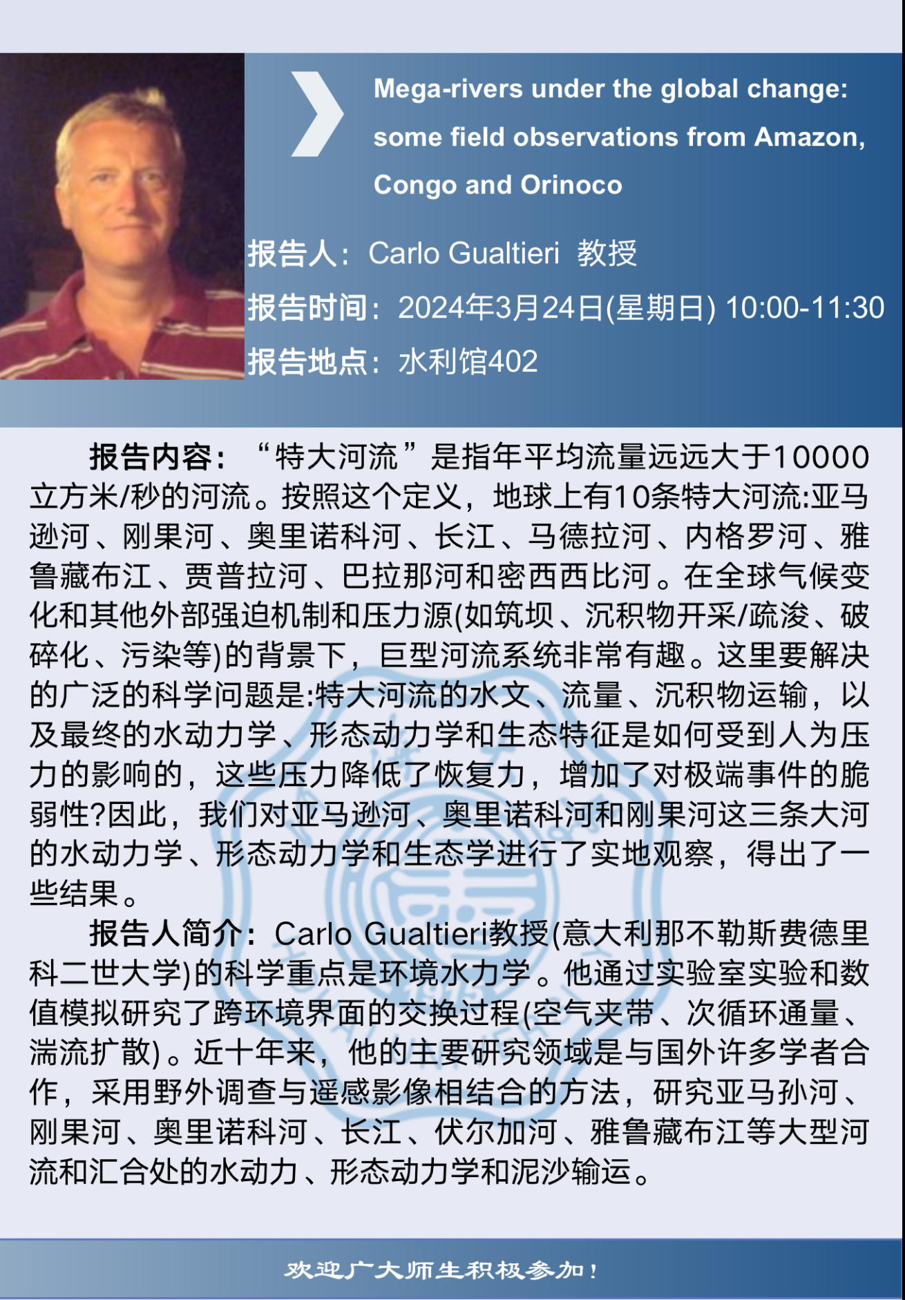 老王论坛 学术报告:Mega-rivers under the global change: some field observations from Amazon, Congo and Orinoco